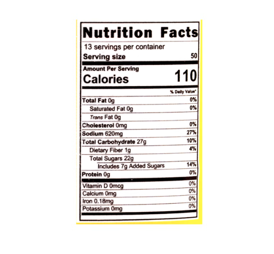 Thành phần: Chanh muối (45%), đường phèn, mật ong (15%), nước, chất ổn định (E440), chất bảo quản (E202), chất tạo ngọt tổng hợp (E951), chất chống oxy hóa (E300), màu tổng hợp beta-carotene.