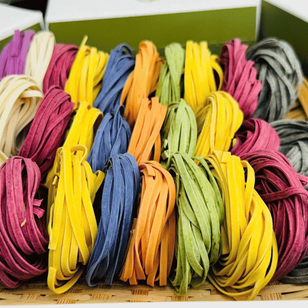 Mì rau củ cầu vòng là món ăn hấp dẫn và đầy màu sắc, kết hợp giữa mì tươi và các loại rau củ phong phú. Những sợi mì mềm mại được kết hợp với những loại rau củ, tạo nên một bức tranh màu sắc tươi tắn và bắt mắt.