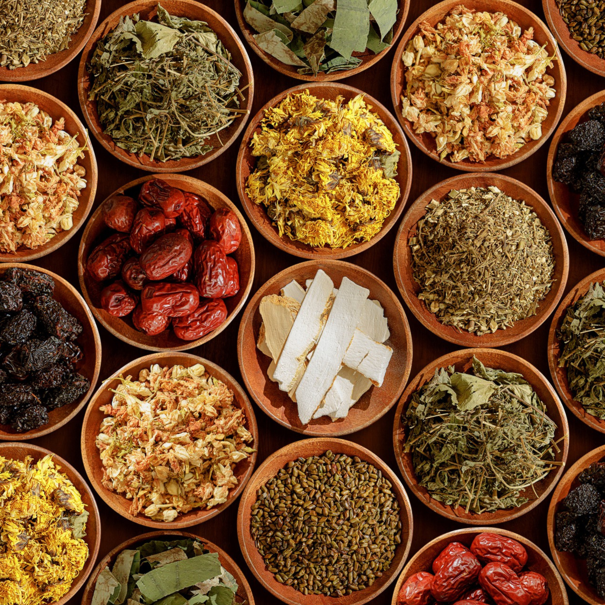 Trà Cung Đình là sự kết hợp hài hòa từ hơn 15 loại thảo dược quý, gồm: kỷ tử, hoa cúc, lá sen, tim sen, cam thảo, atiso, thảo quyết minh, đăng sâm, cánh sen, hoa hòe, hoài sơn, đại táo, sâm… Tất cả đều được tuyển chọn từ vùng nguyên liệu thuần tự nhiên, chế biến theo bí quyết cung đình xưa nhằm giữ trọn tinh túy và dược tính vốn có.